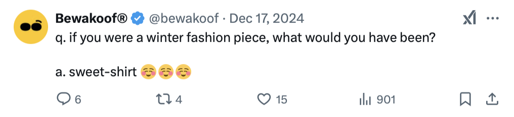 I worked as a Twitter/X + Creative Consultant for Bewakoof till January, 2025, where I helped them reach from 20K to 50K.